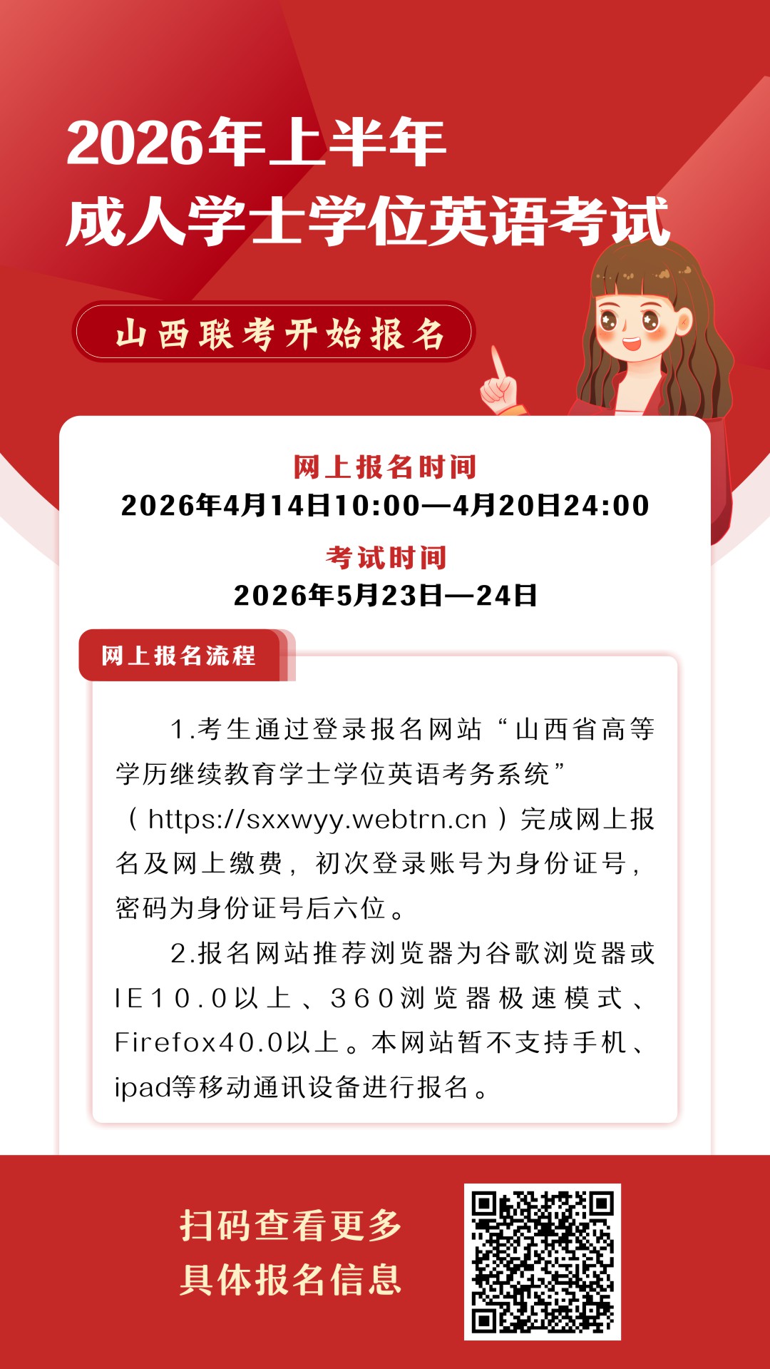 2026年上半年成人学士学位英语考试山西联考开始报名