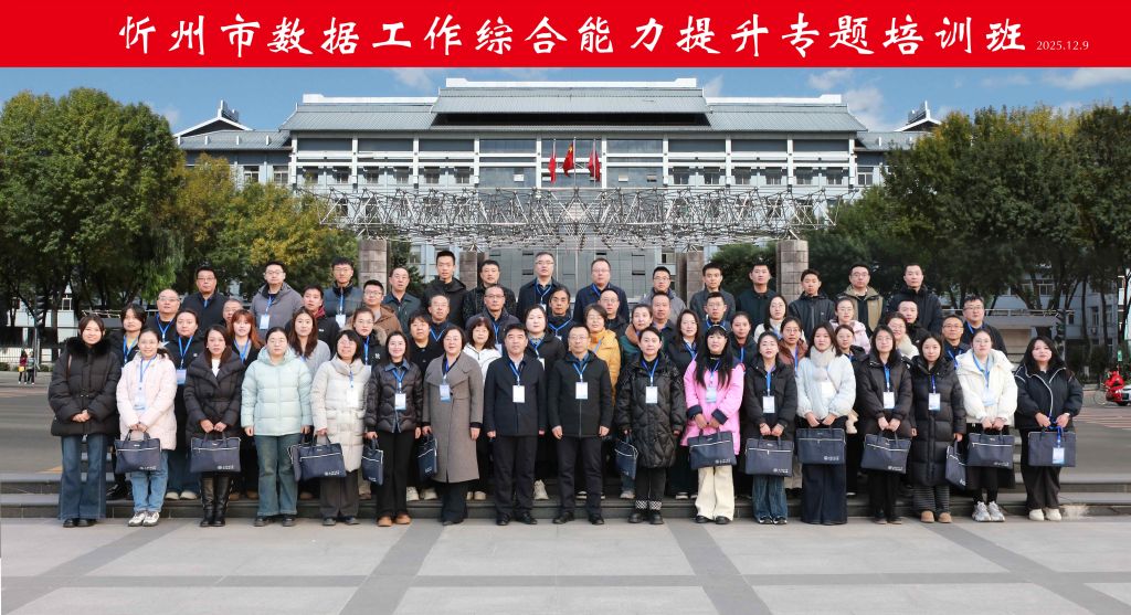 12月9日,忻州市数据工作综合能力提升专题培训班在我校开班,来自忻州市直及各区县相关单位共计62名学员参加培训。忻州市数据局岳俊庭副局长,继续教育学院副院长参加开班典礼,并与学员进行合影。本次培训历时4天,通过讲座与现场教学相结合的方式,围绕党的二十届四中全会精神、数据治理体系构建、数据采集与整合以及公共数据资源登记管理和授权运营等课程展开。