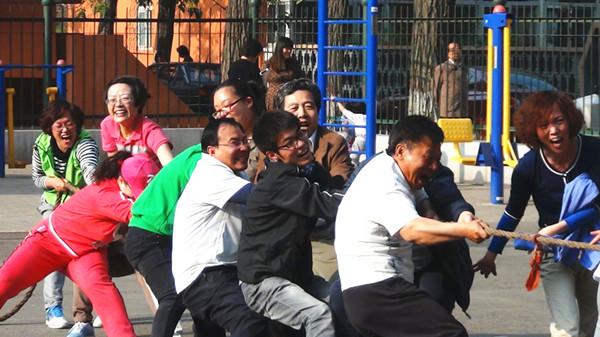 运动会设有团体踢毽子、团体跳长绳、定点投蓝、摸石过河、托乒乓球跑、三人四足和拔河七个项目。这些项目都需要大家团结协作,共同完成。运动中,大家为共同的胜利而奋斗,放松了身心,唤起了健身锻炼的热情,加强了团队合作的意识,共同营造了学院和谐温馨的文化氛围。